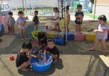こども達は水あそびや泥んこあそびを楽しみながら、元気に過ごしました♪