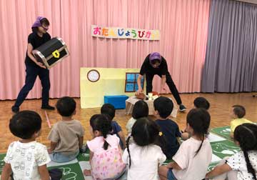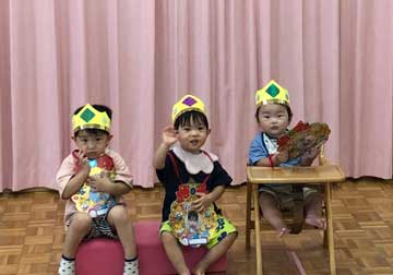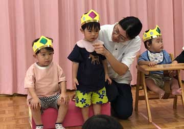 ☆0才~2才児クラスと、3才~5才児クラスに分かれて誕生日会をしました。