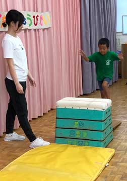 連続前回り、跳び箱4段を、おうちの人にも見てもらえてとても嬉しそうです!