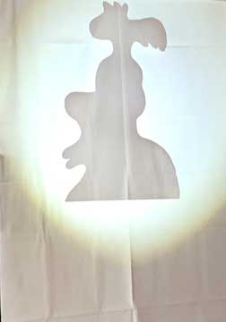 ロバの上にネコが登り、ネコの上にオンドリが降り立ち、怪物のような大きな一つの影が出来ました!