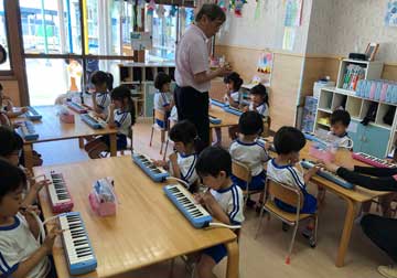 毎月1回、3才~5才児は音楽あそびがあります。