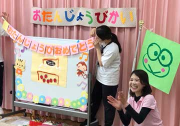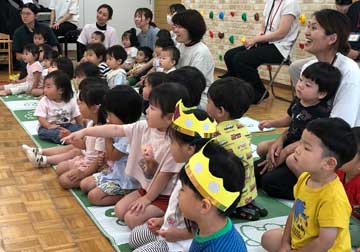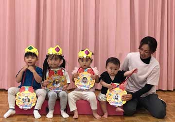 ☆0才~2才児クラスと、3才~5才児クラスに分かれて誕生日会をしました。