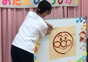 「うわぁ!アンパンマンだぁ~!」と大好きなアンパンマンの絵を見て、みんな喜んでいます♪