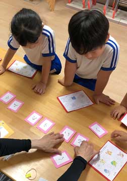 ③文字ならべ・・・文字カードを並び替えて、単語を作ってみよう!