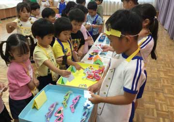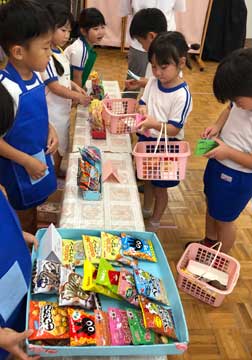 お買い物券を持って、各クラスからお客さんがやってきました♪