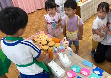 「いらっしゃいませ~!おすすめは○○ですよ~!!」と、お店屋さんになりきっている空ぐみさん♪