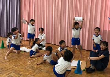 先生も加わり、チーム対抗のゲーム大会!みんなで盛り上がりました♪