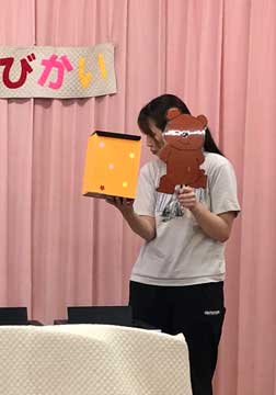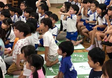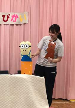 それを聞いた子どもたちからは、「おさるさん?」「あっ、おさるのジョージかも!」などと元気な声が飛び交いました♪