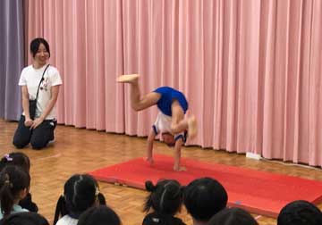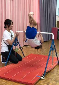 鉄棒前回り、側転、そして最後のポーズもしっかり決まり、周りのお友だちからは大きな拍手が起こりました!
