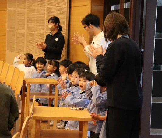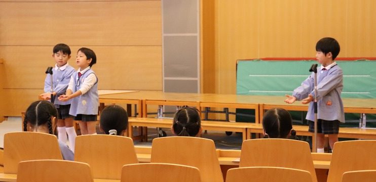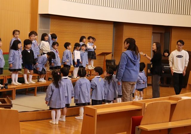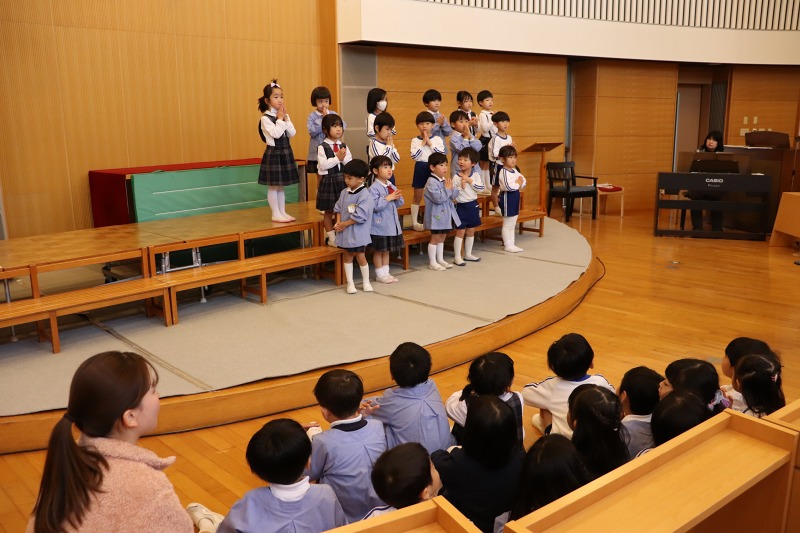 年中・少は、歌でイエス様のご誕生をお祝いします。