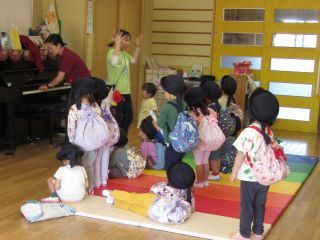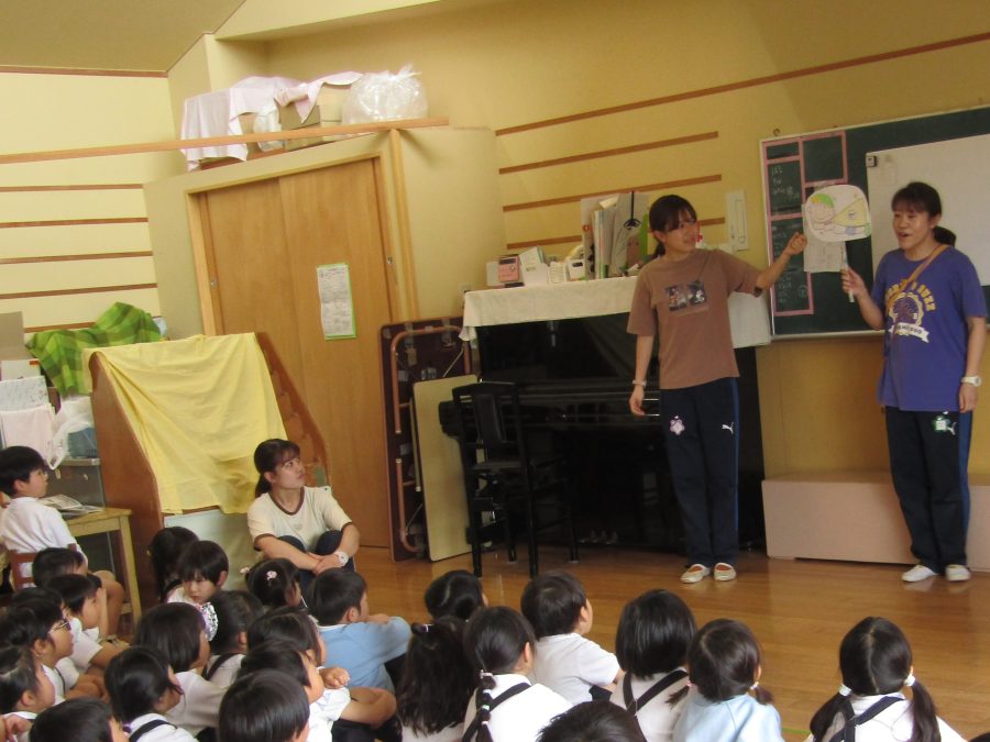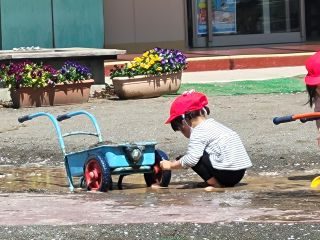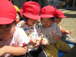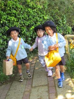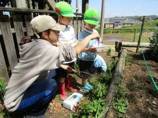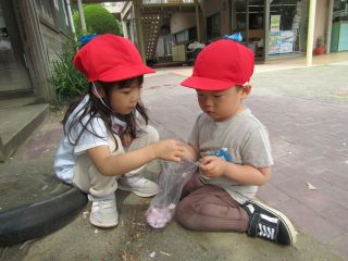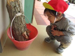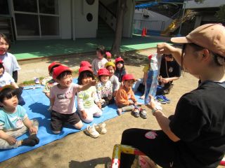 雨がやんだ朝一番、いいじまっこが幼稚園にやってきました。