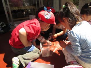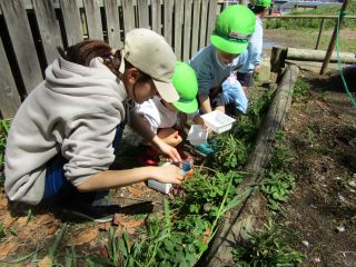 年中さんの時に苗を植えたジャガイモができました。年長さんがじゃがいも掘り。たくさんのじゃがいもが掘れましたね。