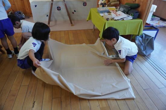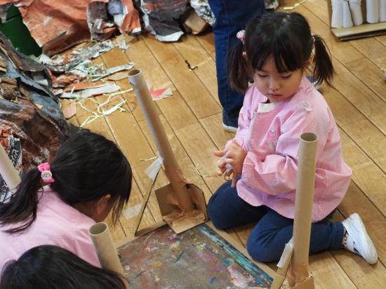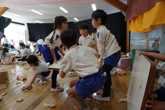 子ども達が最後まで自分たちの手で行う作品展。今回は、各クラスやホールの合作などの片づけの様子をお届けします。