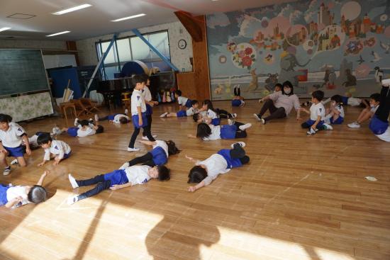 子ども達がホールに集まり集会が始まりました。