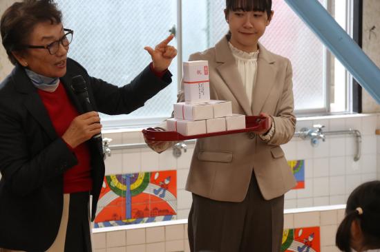 叩き方ひとつで、一つの太鼓から様々な音色が聞こえてくるのが本当に不思議。音の強弱やリズムで変化していくお囃子に次第に引き込まれていく子ども達でした。