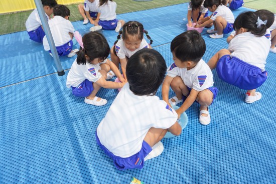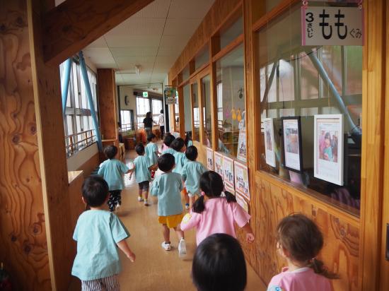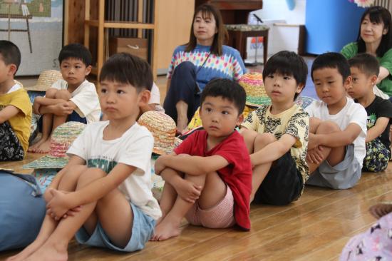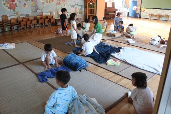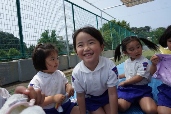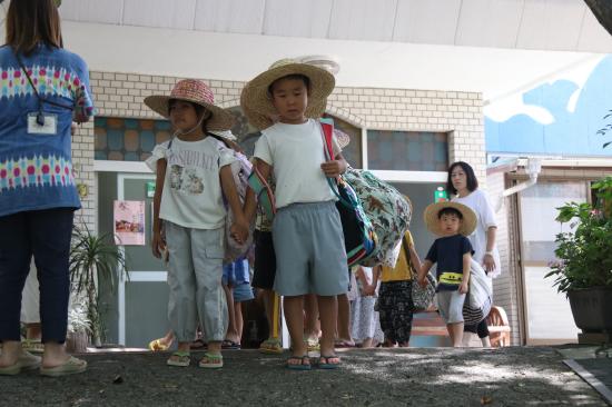 合宿も終わりの時間になりました。整列をし、園長先生のお話を聞きました。「合宿楽しかった?」「自分のことは自分で出来た?」園長先生の問いかけに元気に「は~い!」と手を挙げていた子ども達でした。