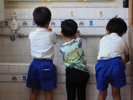 大きい組さんがやってあげるだけでなく、小さいお友だちに任せてみる姿も…。