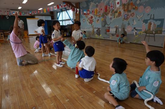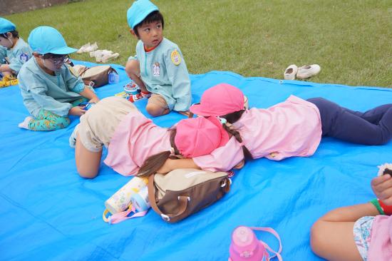 幼稚園でお預かりしていた水筒の出番がやってきました。一人ずつ水筒に麦茶を入れる時にじっと見つめていた子どもたち。「次、〇〇?」と期待感いっぱいでした。