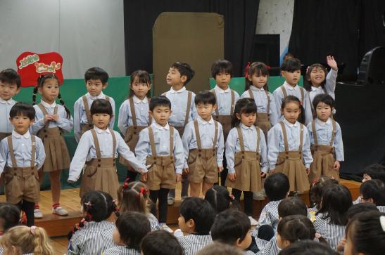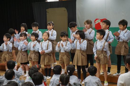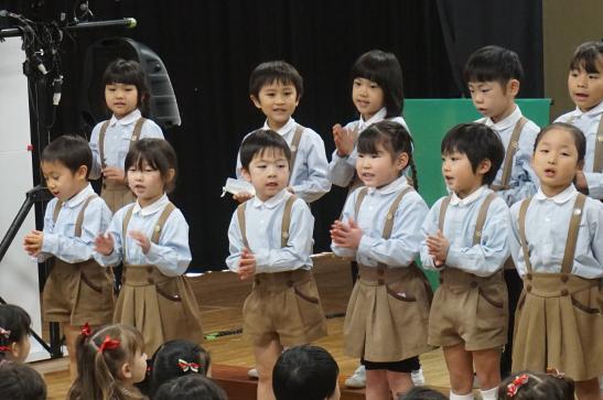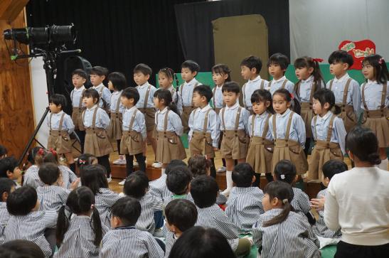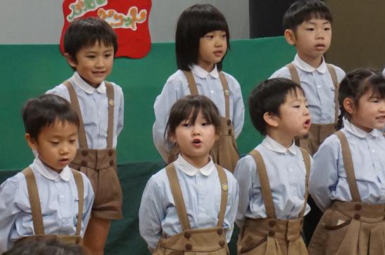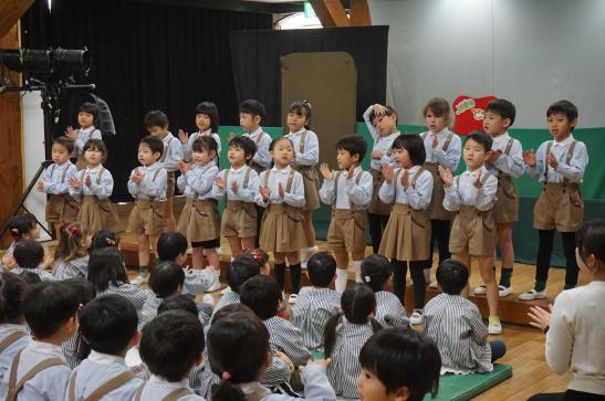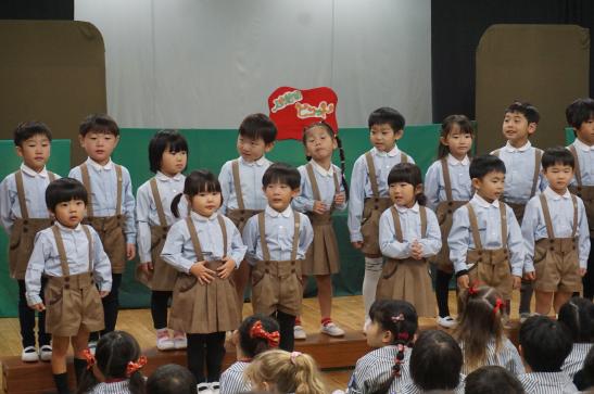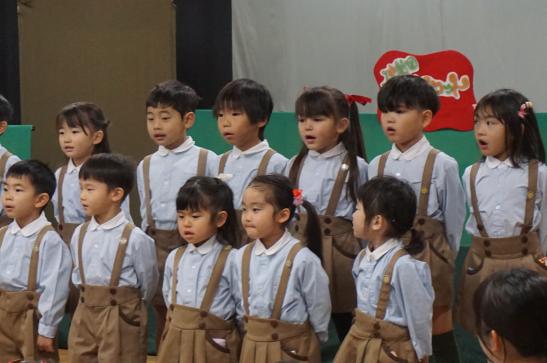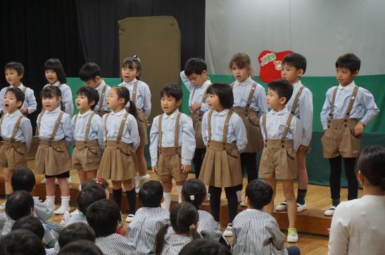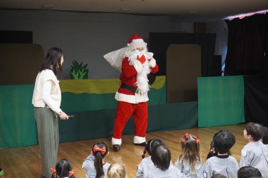 12月16日、クリスマス会が行われました。12月に入り、クリスマスの制作をしたりクリスマスソングを歌ってこの日を楽しみにしていたこどもたち。ホールに集まり、クリスマスソングの歌い合いからクリスマス会がスタートしました。年少さん・たんぽぽさんは『サンタのおじいさん』年中さんは『赤鼻のトナカイ』年長さんは『あわてんぼうのサンタクロース』を歌い、元気な歌声が響きました♪