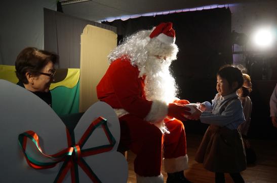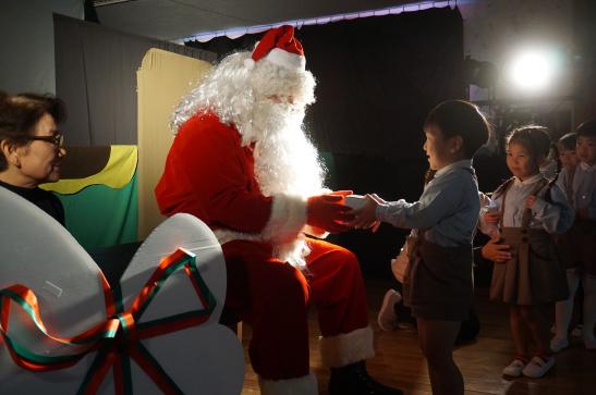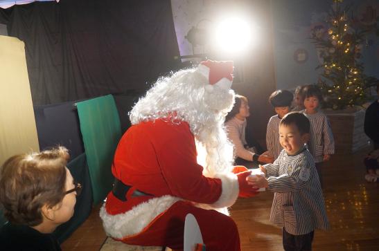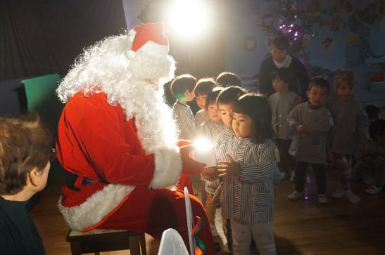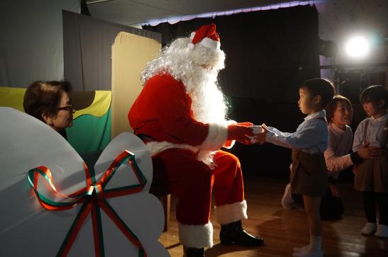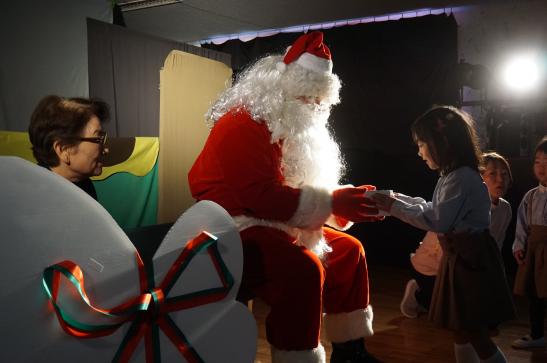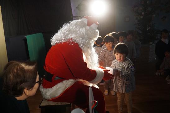 最後はサンタさんから良い子のみんなにプレゼントをいただきました。「いつもプレゼントくれてありがとう」「ありがとう。また来てね♪」などサンタさんへ思いを伝えるお友だちもいました。