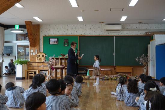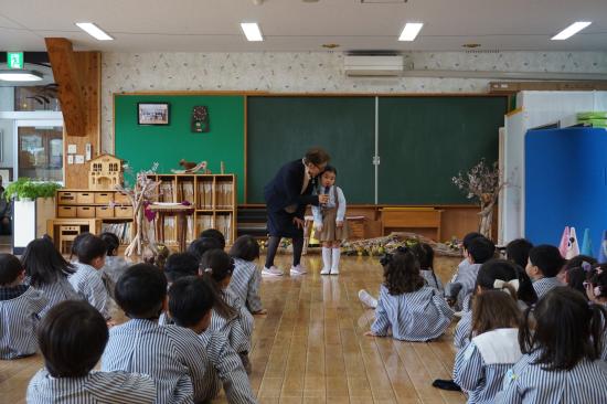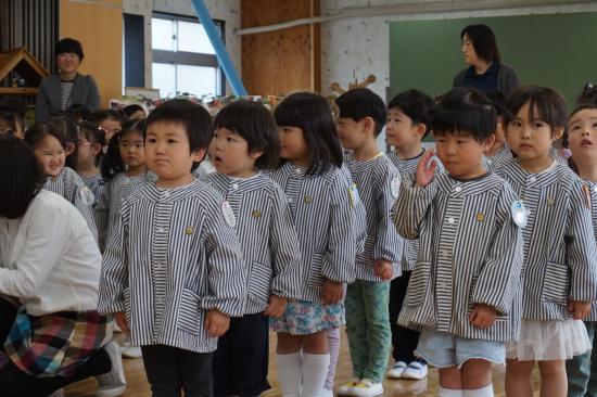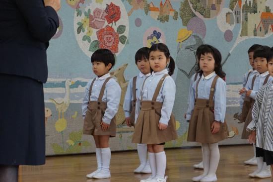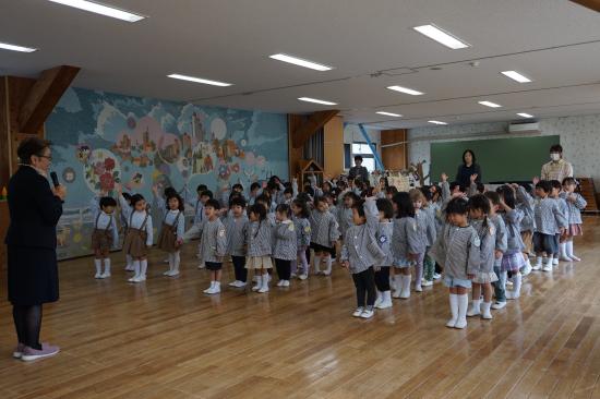 園長先生のお話の最後には、今年度をもって退園されるお友達の紹介とご挨拶がありました。