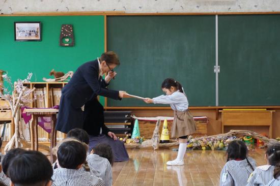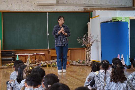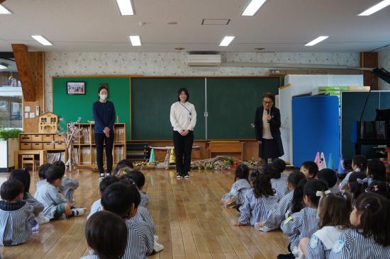 離れ離れにはなりますが、みんなのこれからの頑張りと健康を願ってくれます。行事等で会えた時には元気な姿を見せてくれることでしょう。みんなで笑顔でお別れのご挨拶することが出来ました。先生のこれからの活躍もみんなで願っています。