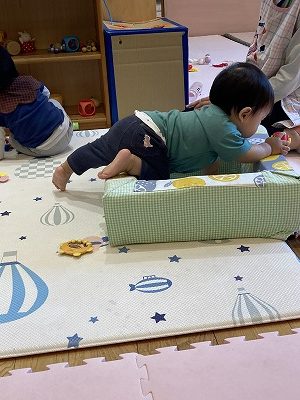 体を動かすあそびは、こどもの筋力やバランス感覚を養ったり等の身体的な発達の促進だけではなく、目と体の連動性を高め、空間認識力を向上したり、「できた」という喜びから自己肯定感が養われたり、問題解決能力や記憶力の発達などの認知能力の発達に影響を与えたりと、子どもの健やかな成長に欠かせないものです。これからも子どもの発達に合わせて様々な動きを取り入れて遊んでいきたいと思います。