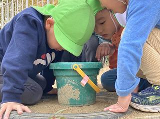 あちこちで「せんせー!」と呼ぶ声が聞こえ、目で見たこと・感じたこと・気が付いたこと・・たくさん言葉で教えてくれ生き物の面白さや不思議さを味わっている様子が伝わります。