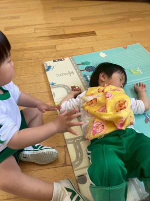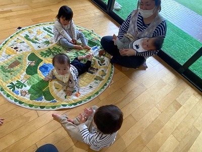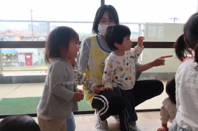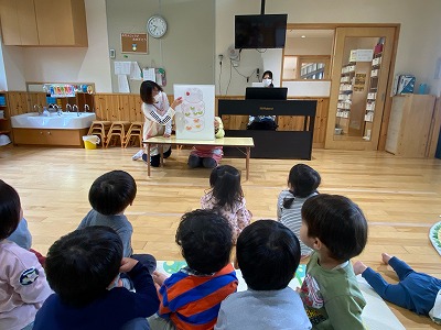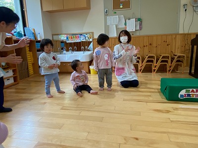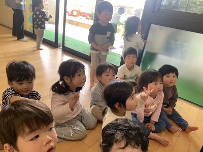 音に合わせてポッケ組のお友だちは歌ってくれたり、身振り手振りを添えてくれました♬バギー組もゆりかご組のお友だちも食い入るように見てくれました。