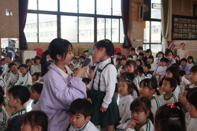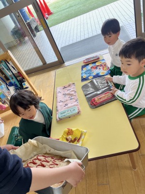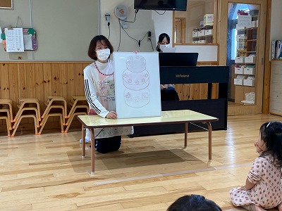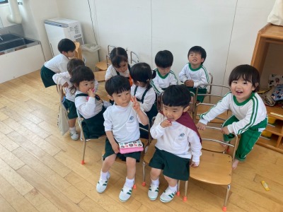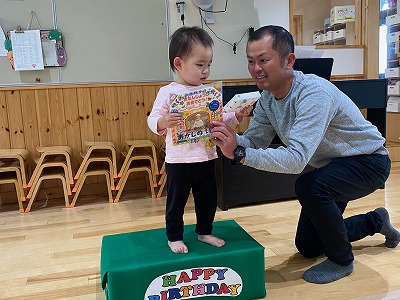 お友達からお歌のプレゼントをしてもらったあとは、副園長先生からプレゼントをいただきました!みんな上手にお名前言えましたね⭐︎