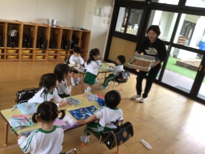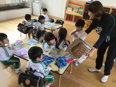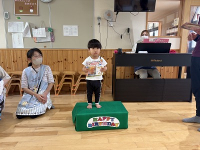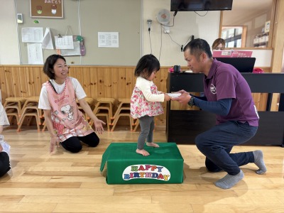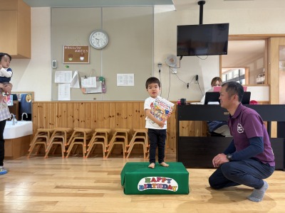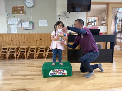 5月生まれのお友だちが副園長先生からプレゼントをいただきました♪