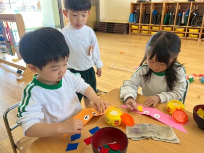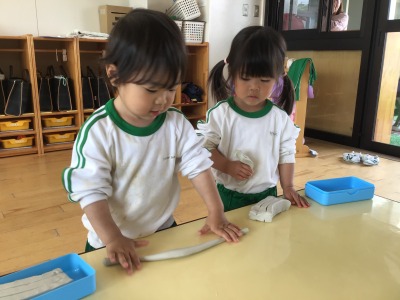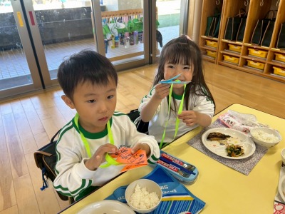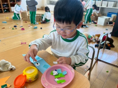 お給食がはじまったり、製作をしたり、外で遊んだり!