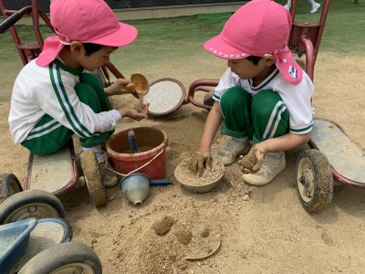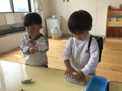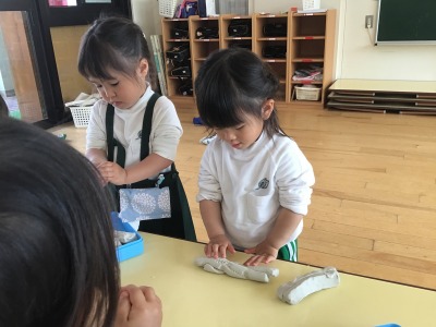 ぬるぬる・ぷよぷよ・ざらざらなど、泥の感触を楽しみながら色々な形を作って創造性を育みます!
