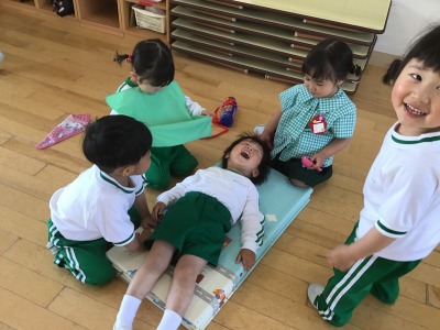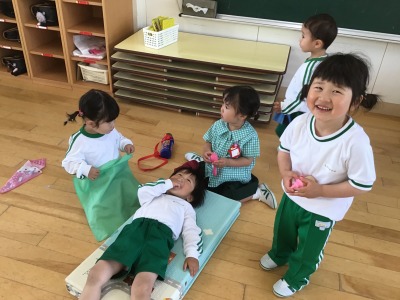 お医者さんごっこをしているかと思えば歯医者さんごっこに移行していたり、子どもたちの遊びの発想が様々で毎日見ていて楽しいです!