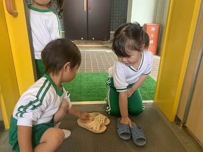 初めはおうちの人と離れるのがさみし〜と泣いていた子ども達も、少しずつ園生活に慣れていき今では楽しく遊んでいる姿が見られています^_^