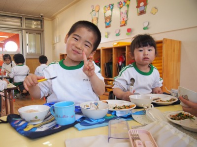 この日のお給食は、みんなの大好きな「ハヤシライスだったのです!」