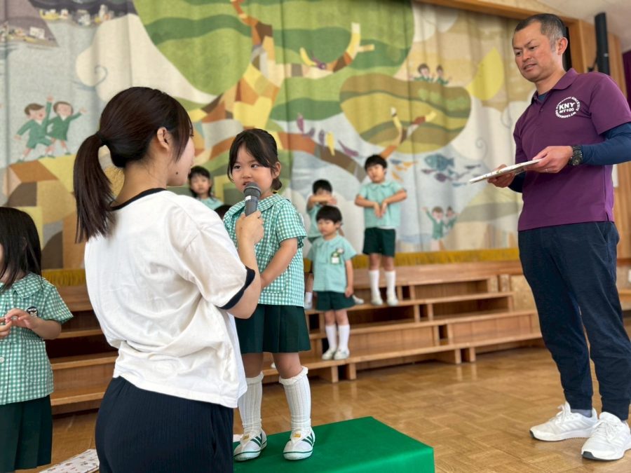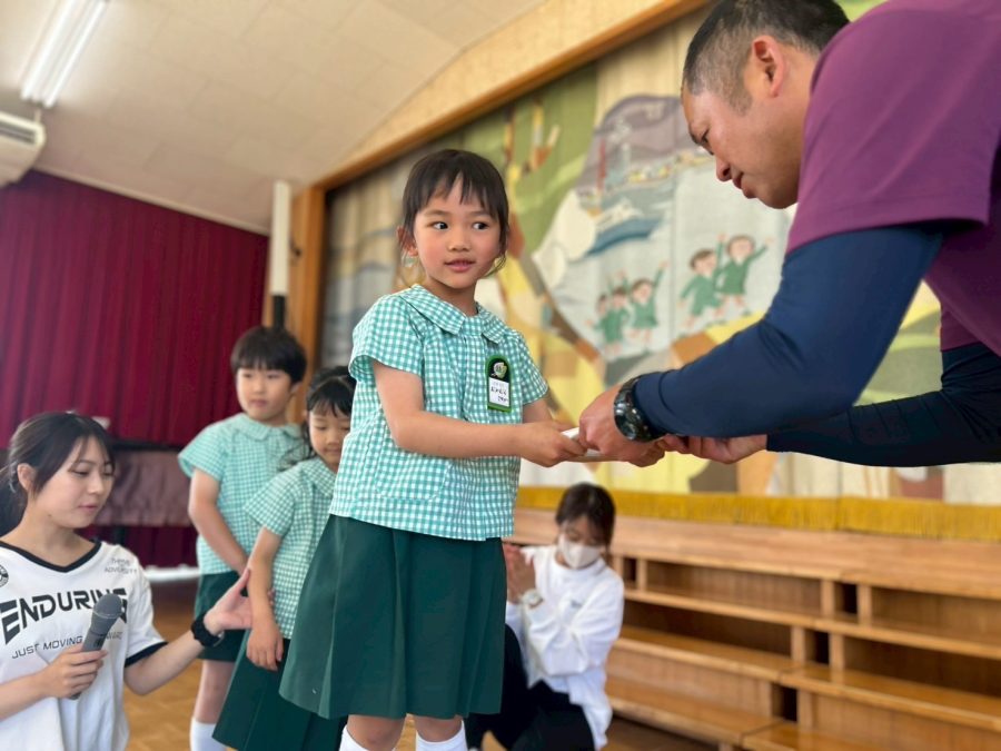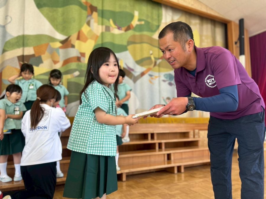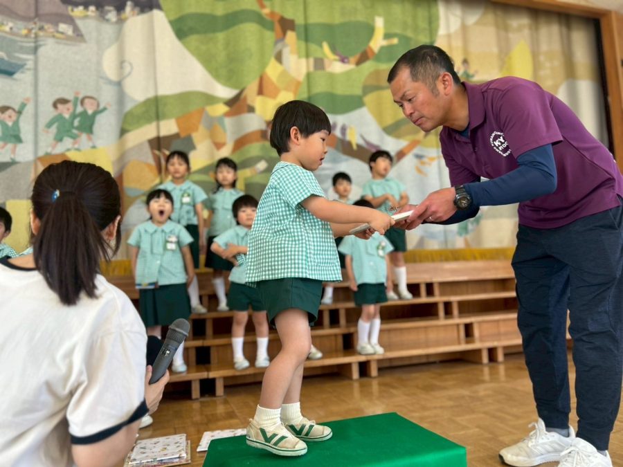 次は副園長先生からプレゼントをいただきました!みんな上手に自己紹介できましたね💛