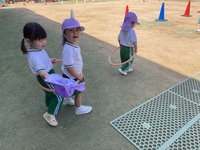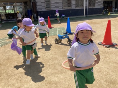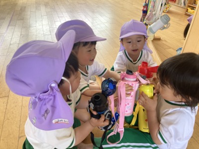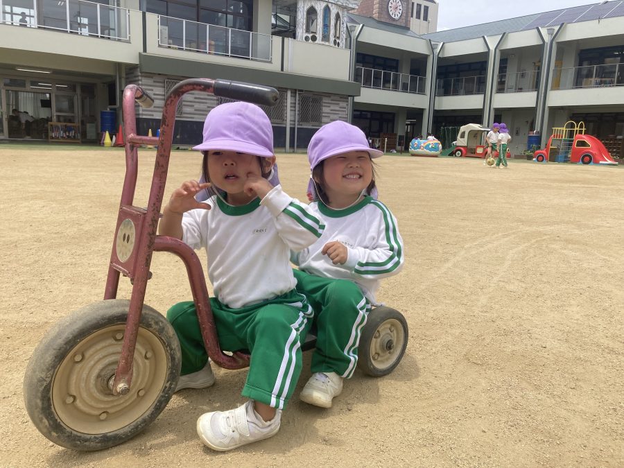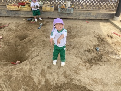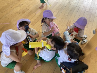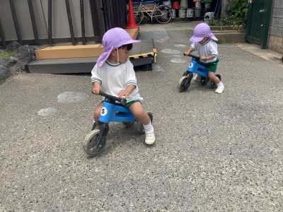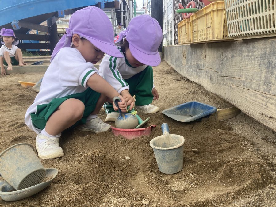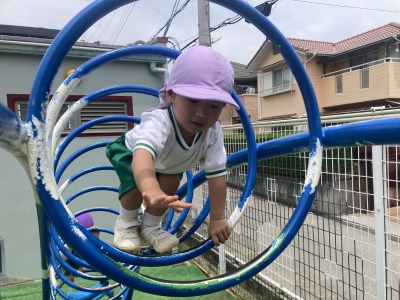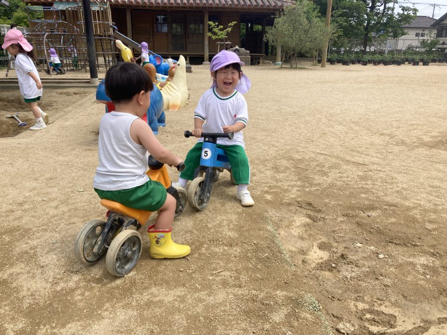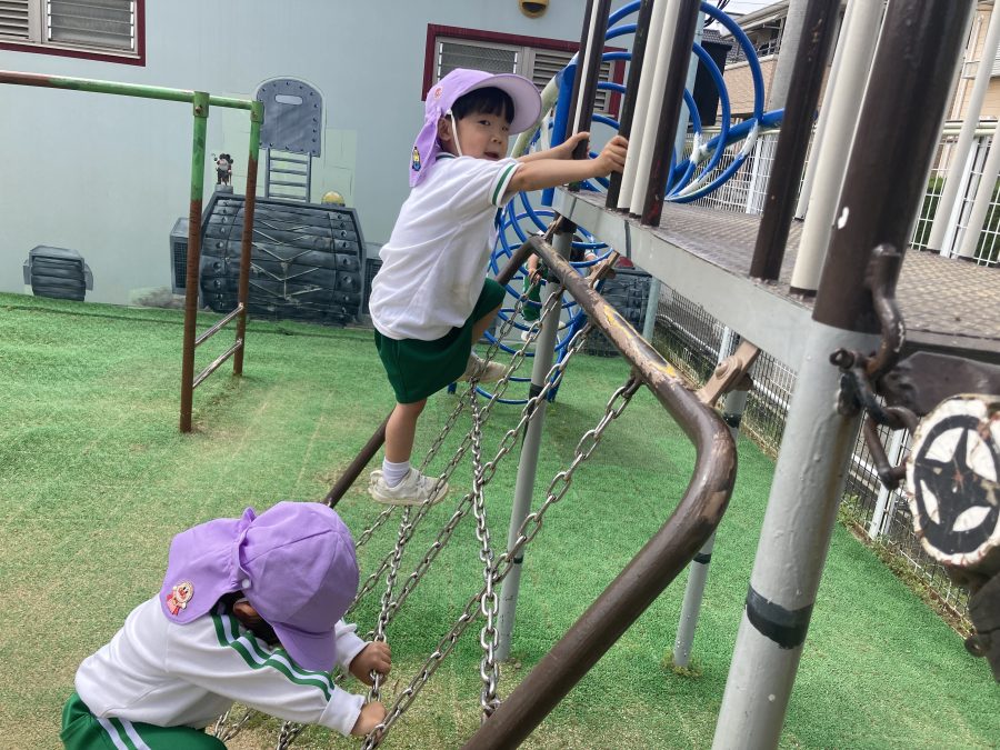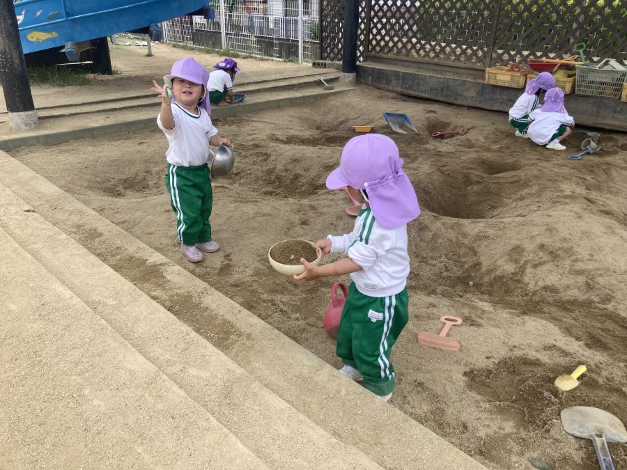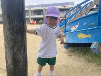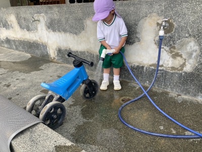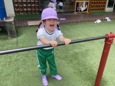 まいにちお天気にめぐまれておそとで元気いっぱい遊んでいます!暑くなったり、お水で濡れて自らシャツになるお友だちも・・・