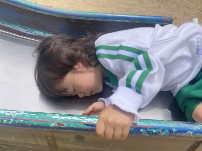 すべり台暖かくてきもちいい♡と寝るふりをするかわいい姿も♡