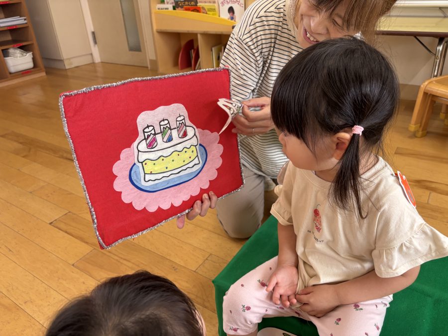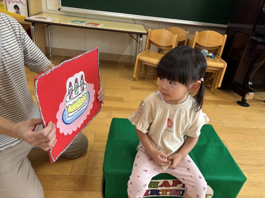 「おめでとう」パチパチ~♬みんなからお祝いメッセージとお歌をプレゼントをしました。