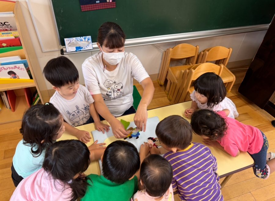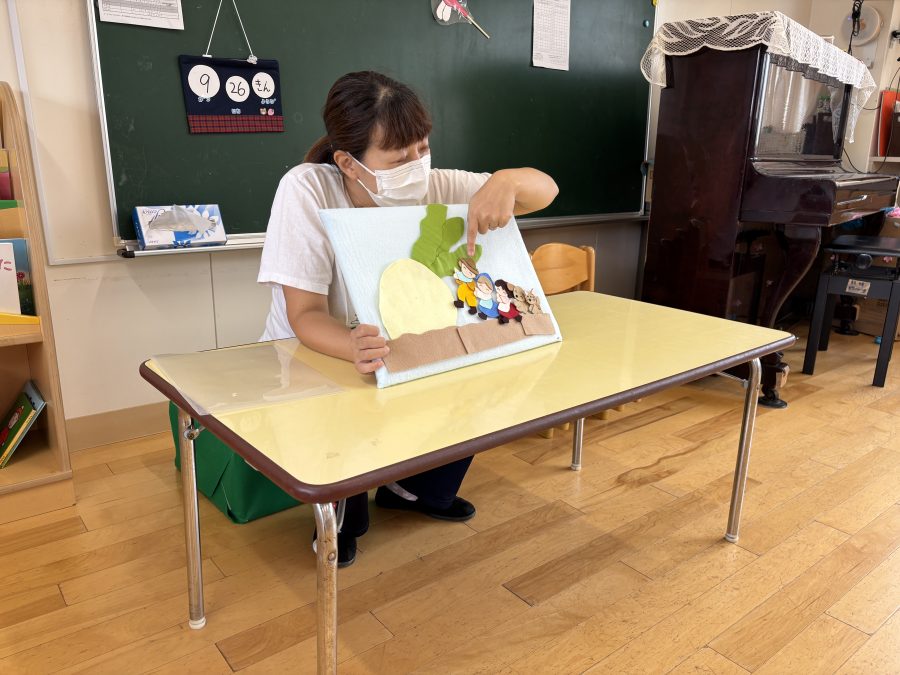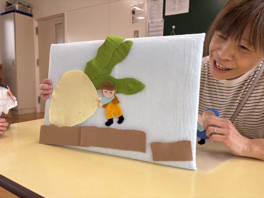 先生からのプレゼントは、『おおきなかぶ』のパネルシアターでです。