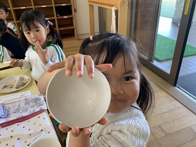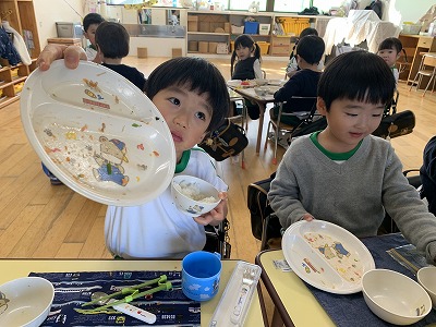 給食を完食して、空っぽになったお皿をうれしそうに見せてくれたり、