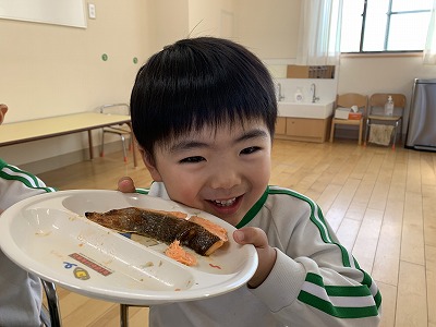 さけのにおいをかいで「いいにおいがする〜!」と声をあげたり、