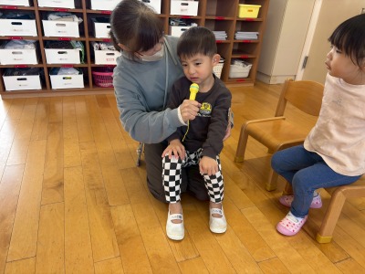この日は「視覚と手の協応遊び」を取り入れて遊んでいました。