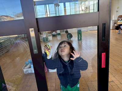 さらに、「まども ふく〜!」と、窓拭きは子どもたちから進んでスタート!