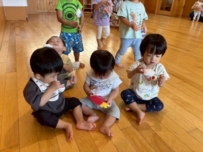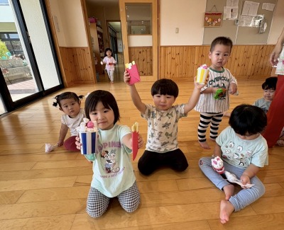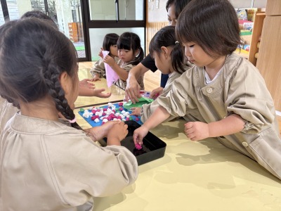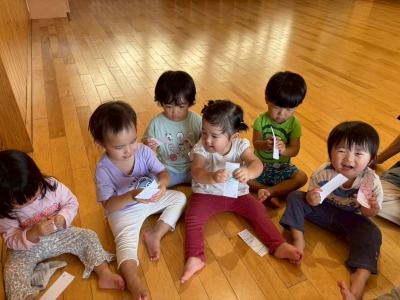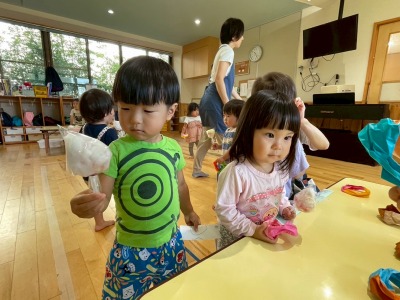0~2歳でお買い物ごっこをしました。お買い物ごっこの準備はぽっけぐみのみんなが頑張つてくれました!