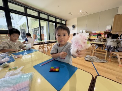一番人気だったのはやっぱりわたあめ!ふわふわの見た目がかわいくて、「かわいいから綿あめ作りたい✨」と次々と集まってきて、ほんとにたくさんできあがりました☻