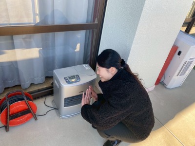ピアノを弾くのに、手が冷えないようにストーブで温めながら準備する先生も♪