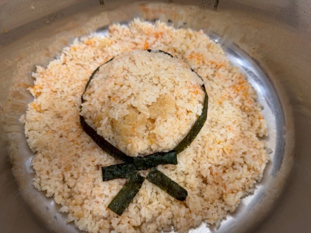 おひつを開けると…大きな帽子のごはんが登場しました!
