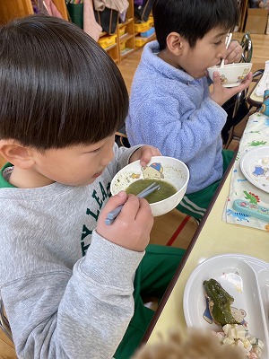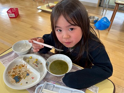 また、グリーンスープを食べながら、